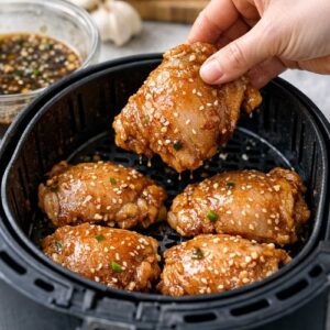 This is a modern take on classic Asian-inspired glazed chicken—think the umami-rich, slightly sweet profiles you’d find in authentic Cantonese and pan-Asian cuisine. What makes this version special is the air fryer technique, which lets us achieve restaurant-quality caramelization with minimal oil while keeping the meat incredibly tender inside.