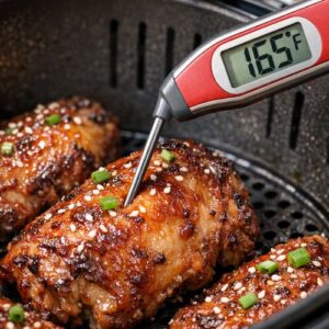 - Air Fryer Alternative – Bake at 425°F on a lined sheet pan for 18-20 minutes, flipping halfway. You’ll lose some of the crispy exterior but keep all the flavor. For a stovetop version, sear thighs skin-side down in a skillet for 5 minutes, flip, add glaze, and finish in a 375°F oven for 12 minutes.