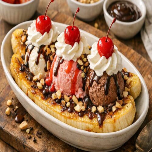This Air Fryer Banana Split Recipe is proof that you don’t need complicated techniques, expensive ingredients, or hours of time to create genuine joy through food. What you need is intention—choosing quality ingredients and respecting the process. Every single time I make this, I’m amazed by how six minutes in an air fryer can transform something so simple into something so memorable.