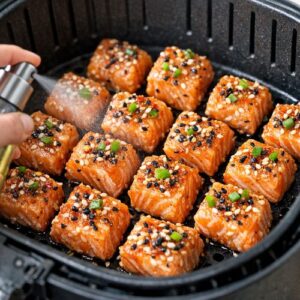Honey salmon bites are cubed salmon filets that get a quick kiss in the air fryer with a spicy-sweet honey glaze. The magic happens when the natural oils in the salmon caramelize against the heat, creating a golden crust while the inside stays incredibly moist.