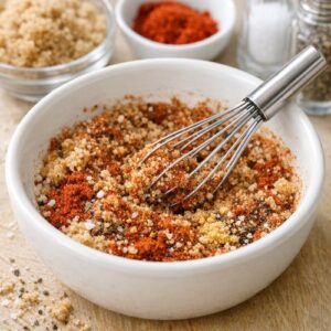 In a separate small bowl, whisk together the brown sugar, smoked paprika, salt, pepper, mustard powder, and cayenne. This is where the magic starts. The brown sugar should break up any lumps so the mixture is uniform and fine. Take a moment to smell this combination—that's what you're about to taste in about 15 minutes.