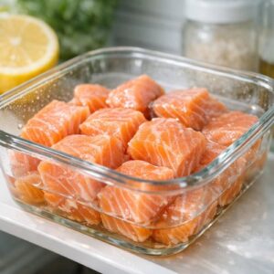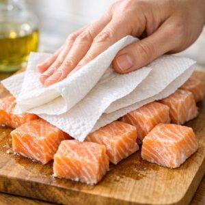 Pat your thawed salmon completely dry with paper towels. Moisture is the enemy of crispiness. I'm thorough here—wet salmon won't brown properly, and you'll end up with gray, sad bites instead of golden, beautiful ones.